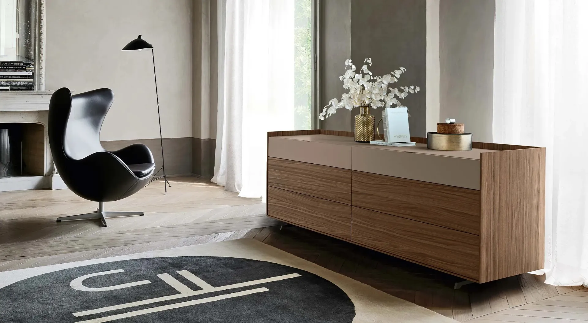 Una ricca gamma di cassettiere Sangiacomo: i comodini moderni in legno, come Cabaret Comò, sono tra le soluzioni più esclusive.