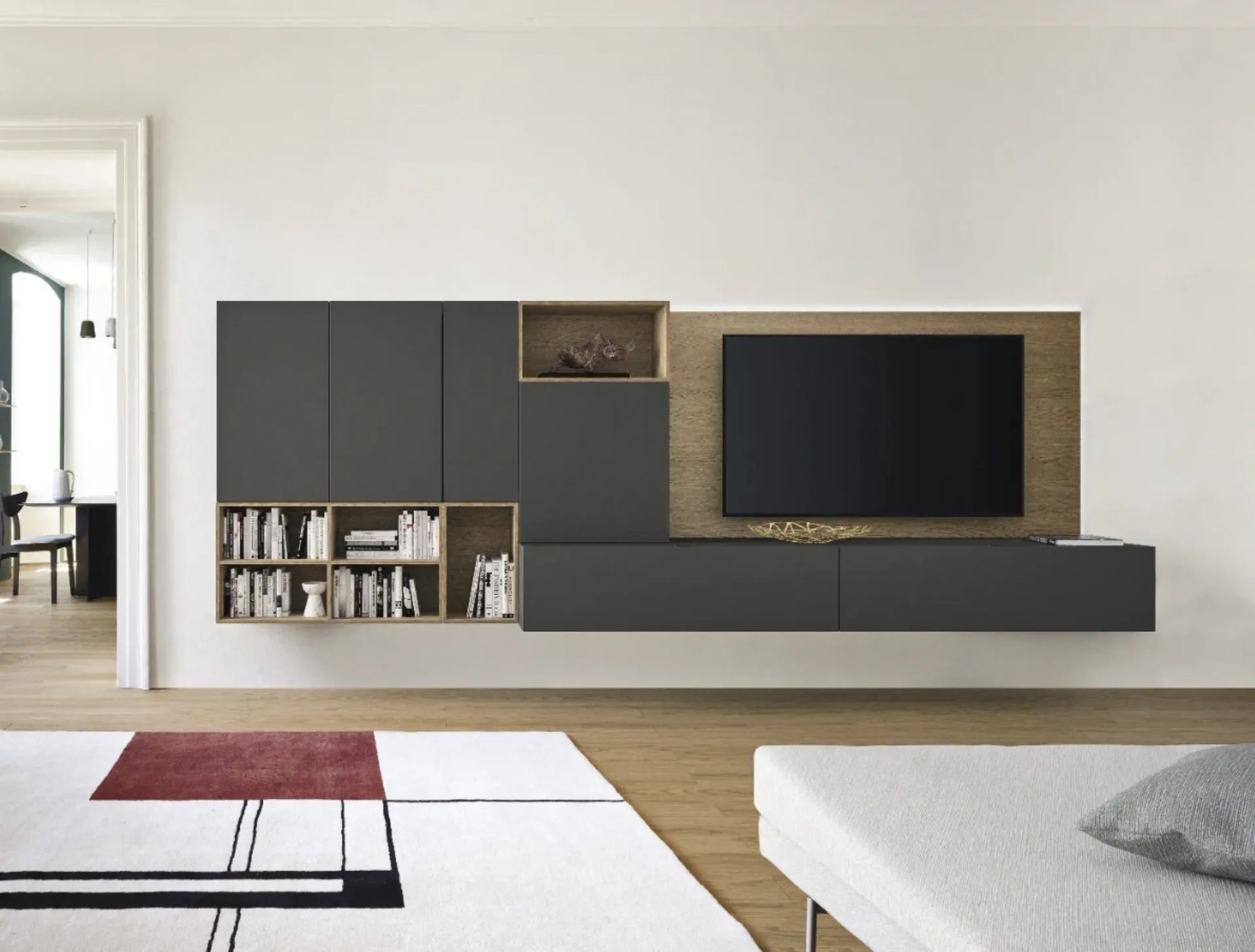 Clicca e scopri il modello Pannello TV Sangiacomo: questo mobile per la TV in laccato opaco è tra le più originali soluzioni per il soggiorno.