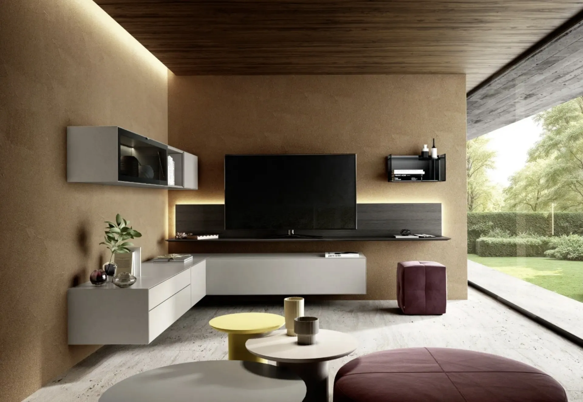 Questa parete attrezzata è una delle soluzioni del marchio e ti permetterà di ammobiliare il soggiorno secondo le più personali problematiche abitative. Attraverso un gioco dinamico di accostamenti fra elementi a giorno o vani chiusi, le Pareti Attrezzate moderne arredano il soggiorno ottimizzando ogni spazio. Le Pareti Attrezzate hanno acquisito un posto di primo piano nella zona giorno delle nostre case: sono arredi plurifunzionali e salvaspazio sempre realizzabili su misura per te.